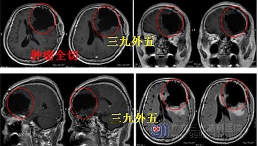 在广东三九脑科医院检查后,黄爷爷和家人都惊呆了,头颅MRI示:1.左侧额岛叶、左侧基底节-胼胝体区占位性病变,范围约5.8cm×6.3cm×3.7cm,考虑高级别肿瘤性病变,胶质母细胞瘤可能;2.脑白质少许变性灶;3.右侧基底节区异常信号影,考虑为增宽的血管周围间隙;4.左侧大脑镰下疝;5.双侧筛窦、双侧额窦少许炎症。