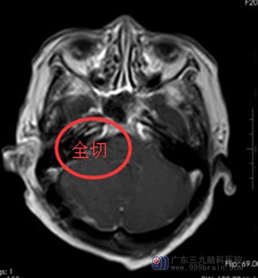 在广东三九脑科医院综合神经外科,袁阿姨及家属充分了解病情后,同意手术治疗。由鲁明副院长主刀在全麻下行“右侧桥小脑角占位切除术”,手术顺利,术中出血仅100ml。病理检验报告:病变符合(右侧桥小脑角)良性病变,结合临床及影像,考虑蛛网膜囊肿可能性大。