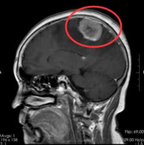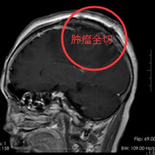 取得家属支持后,阿婆在全麻下行“左侧额顶部占位病变切除术”,术中可见肿瘤位于右额顶交界处,大小约3cm×4cm×3cm,将肿瘤全切除,术程顺利。术后的余阿婆恢复良好,肢体活动恢复正常,头痛头晕症状消失。