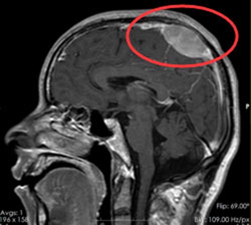 43岁的文先生素来身体强健,二天前在没有任何诱因的情况下突然倒地,四肢抽搐,家人急忙大声的呼唤他,这时的文先生已呼之不应,持续数分钟清醒,之后,文先生不能回忆当时的情景。全家人刚刚从恐慌中逐渐平静下来的时候,第二天文先生再次出现突然倒地、四肢抽搐。一家人不敢再大意,赶紧送他到当地医院就诊,头颅CT检查提示:左侧顶部大脑镰占位。