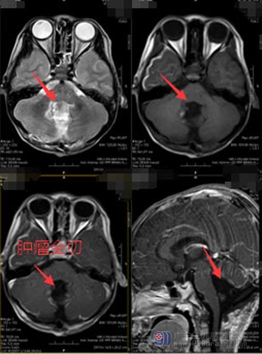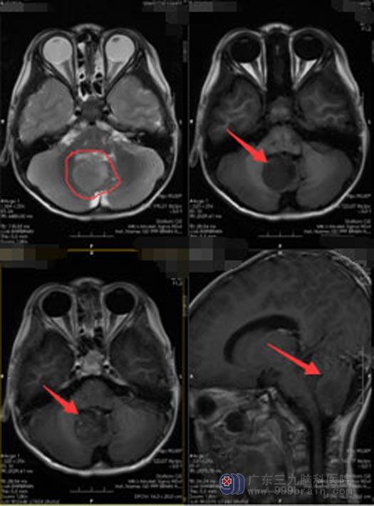 在广东三九脑科医院神经外五科,明明进行了进一步的影像检查,提示为:四脑室、小脑蚓部、右侧小脑半球占位。