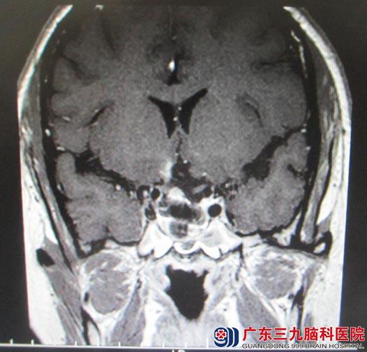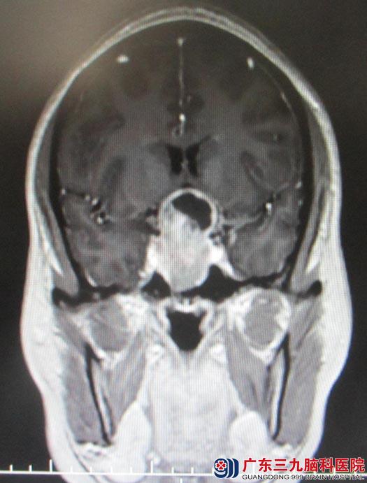 艾女士在半年前开始出现月经失调,经期延长,经量稀少,常规妇科检查未见明显异常,予中药调理,效果欠佳;并逐渐出现双眼视物模糊,当地医院头颅CT检查提示“鞍区占位”。广东三九脑科医院头颅MRI检查结果:“鞍区占位,大小约3cm×4cm,考虑垂体瘤”。诊断:鞍区占位,垂体大腺瘤。