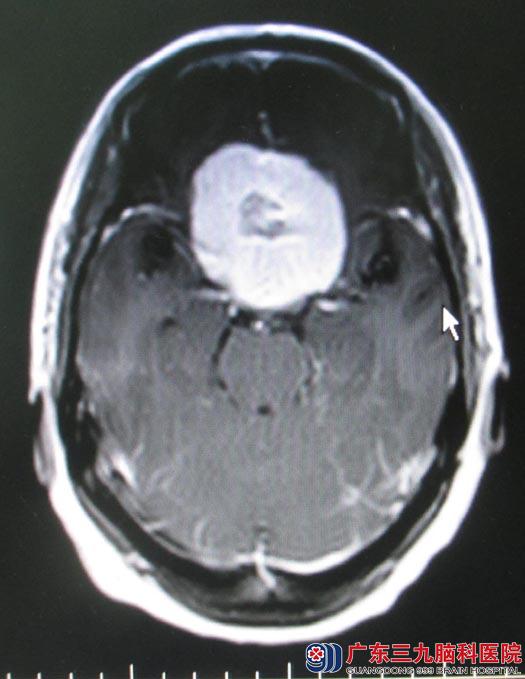 一周前视力下降逐渐加重,当地医院双侧视力及视野检查提示“双眼颞侧视野明显下降”,随后头颅MRI检查提示“前颅窝底占位,直径约5cm,考虑脑膜瘤”;广东三九脑科医院头颅MRI检查结果:前颅窝底占位,直径约5cm,考虑脑膜瘤。
