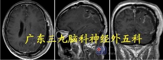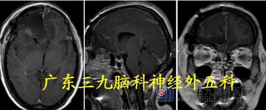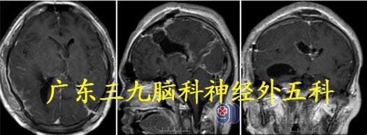 术后MR 显示肿瘤基本完整切除,术后病理:间变型脑膜瘤WHO III 级。