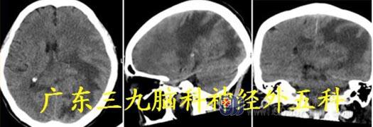 头颅CT:左侧顶部占位性病变,并周围广泛水肿,邻近左侧顶骨受侵犯,考虑脑外占位性病变。