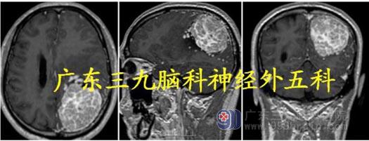 头颅MR:左侧顶部示团块状占位性病变,范围约5.5×6.0×6.4cm,增强扫描明显强化,左侧顶部占位性病变伴病灶内及周围多发畸形血管,考虑脑膜瘤可能性大,不排除近脑表面胶质肉瘤并血管畸形;
