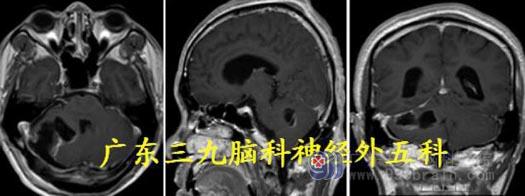 入院诊断:1.四脑室及脑干占位性病变:室管膜瘤? 2.梗阻性脑积水