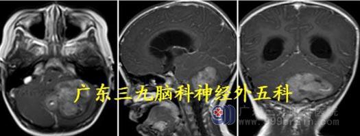 入院诊断:1.小脑蚓部-四脑室巨大占位;2.小脑扁桃体下疝;3.梗阻性脑积水;