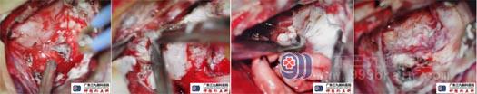 术中于前颅窝底可见肿瘤,呈肉红色,血供一般,自肿瘤基底部分离肿瘤,切断肿瘤血供,可见肿瘤起源前颅窝,与嗅神经黏连严重,随后超声吸引器分块切除肿瘤,肿瘤全切。