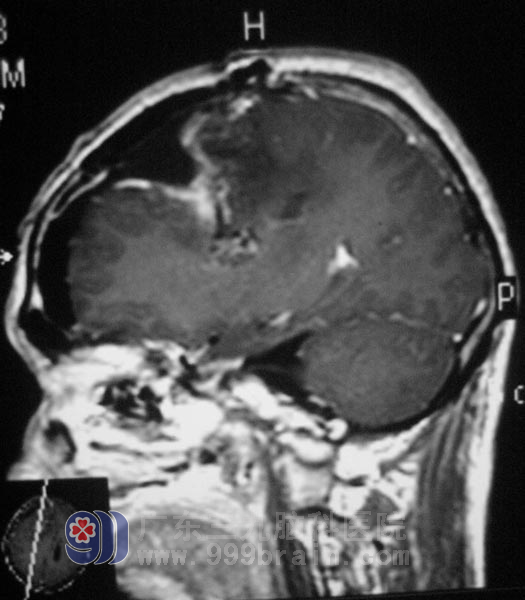 肿瘤巨大侵及位置广泛,术前有明显高颅压及明显肢体运动功能障碍。手术难度大,术后易出现偏瘫、癫痫等并发症。家属反复考虑后同意行手术治疗。