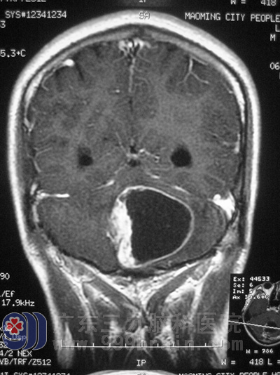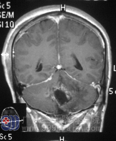 最近几天,阿辉的头痛越来越频繁,清晨起床后头痛更剧烈,并伴有恶心、轻微头晕等症状。到当地医院行头颅CT检查后发现:左小脑及小脑蚓部区占位病变并幕上脑积水。一家人都不愿意相信这个检查结果,于是再次到当地中心医院求证,行头颅MR提示小脑半球占位性病变,怀疑为血管母细胞瘤或小脑星形细胞瘤。但由于肿瘤长的位置较深,肿瘤附近血管丰富,毗邻脑干,因此,当地医院不敢贸然为之手术,并告知阿辉,手术过程稍有不慎将会使他瘫痪或者变成植物人。