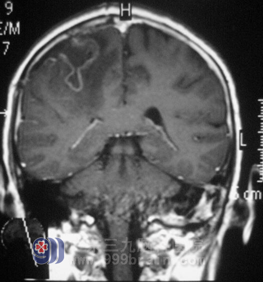 入院时伍女士呈深昏迷状,GCS评分6分,右侧瞳孔直径5mm,对光反射消失,左侧瞳孔直径4mm,对光反射迟钝,头颅MRI结果提示:右侧额叶占位,伴有出血,脑疝。综合神经外科鲁明主任亲自主刀急诊行右侧额叶占位切除术+去骨瓣减压术,见中央前回处黄色透明状病灶,显微镜下予以缜密切除。手术过程顺利,返回监护室予专科监护,双侧瞳孔等大等圆,对光反应灵敏,予抗炎、脱水、营养等对症治疗,术后第三天,伍女士神志清醒,对答切题,四肢活动基本正常。一周时间的治疗后,伍女士已经可以下床自行活动。术后经病理证实为:胶质细胞瘤WHO III级。已转放疗科行后续治疗。http://www.999brain.com/