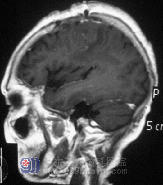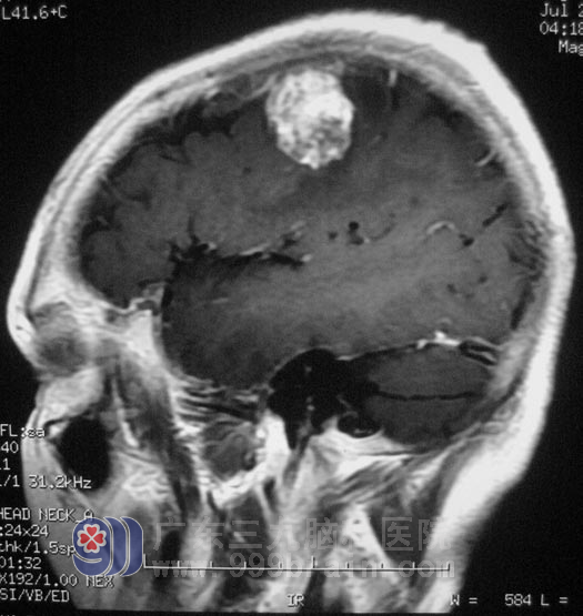 好心的邻居提醒她:“去做个检查看看,有病早治疗,没病就权当为自己做个体检”。在当地医院行MR检查,结果提示:左侧额顶叶占位,医生考虑脑膜瘤可能,建议手术治疗。http://www.999brain.com/