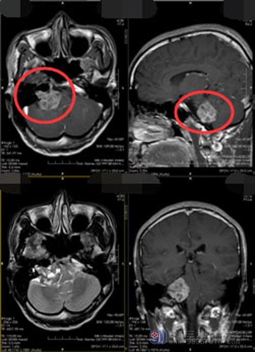 近1周,龙先生感觉右侧面部放电样疼痛较之前加重,讲话、吞咽都可以诱发,疼痛导致龙先生无法正常吃饭、睡觉,忍受不了的龙先生又在医院做了更进一步的检查,头颅MR提示“右侧桥小脑角占位性病变,考虑听神经鞘瘤”。