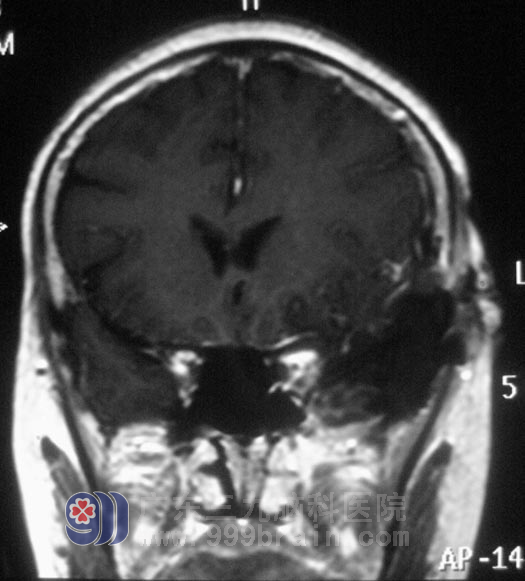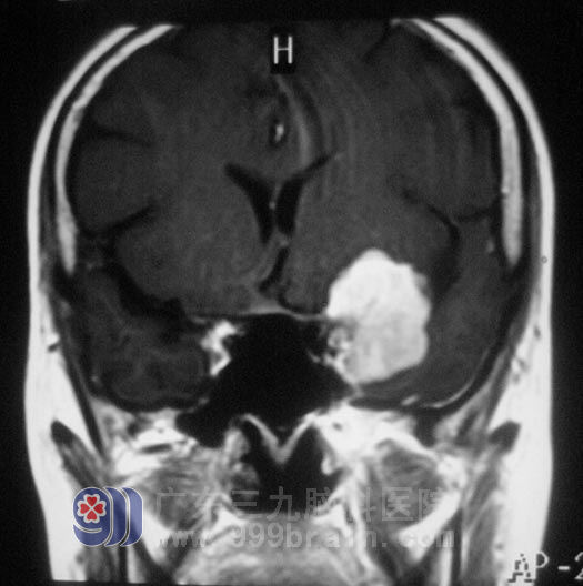 11月23日,由广东三九脑科医院综合神经外科 鲁明主任主刀,在全麻下行左侧蝶骨嵴脑膜瘤切除术+颅内压探头植入术,术中取左侧额颞弧形切口,在显微镜下见肿瘤呈灰白色,与大脑中动脉粘连紧密,予肿瘤全切,对视神经、动眼神经保护完好。术后黄女士经过一段时间的恢复,诉左眼视力较术前明显好转,肩周炎也在广东三九脑科医院得到了有效的治疗。术后病理结果:过渡型脑膜瘤 WHO I 级。http://www.999brain.com/