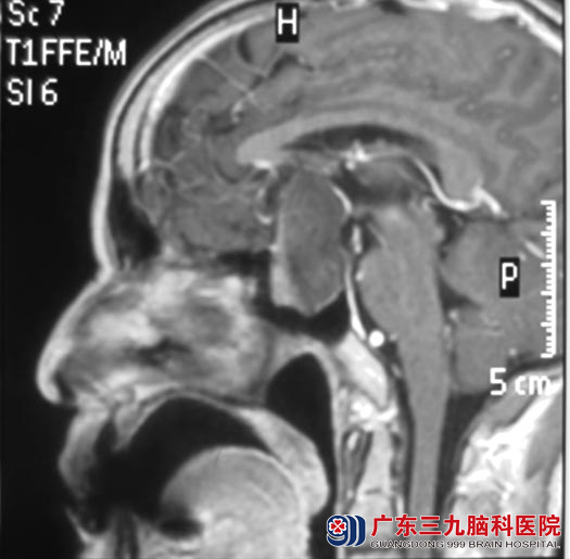 一周前突发头痛,额部胀痛,疼痛时视力模糊加重,夜尿增多。当地医院的头颅CT检查提示鞍区病变,进一步头颅MR检查考虑颅咽管瘤可能,待排垂体腺瘤。