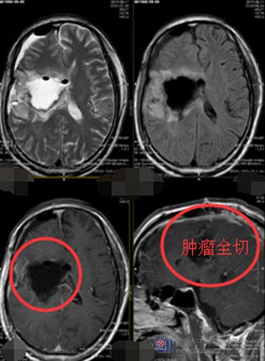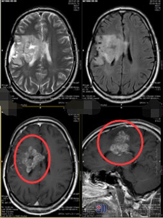 李叔,七年前由于胶质瘤复发在广东三九脑科医院神经外五科就诊,头颅MR检查示:右额顶叶病变,直径约5cm,行“右额顶叶肿瘤切除术”,病理结果:少突星型细胞瘤(WHOⅡ级),术后左侧肢体乏力减轻,无四肢抽搐,语言流利,之后一直在行放化疗。