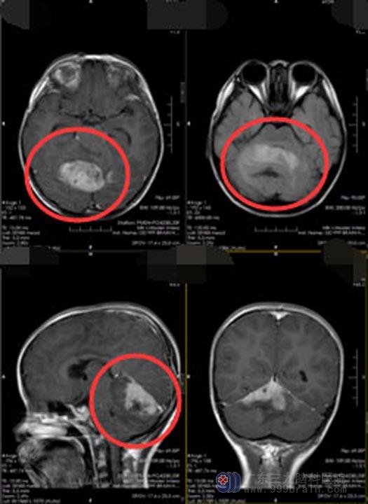 六岁的小妍是幼儿园大班孩子,平时聪明听话、乖巧懂事。最近两周她经常和妈妈说自己头痛、呕吐,走路也有点摇摇晃晃。小妍的父母以为孩子是感冒了或消化不良了。在当地医生的建议下做了头颅MR检查,结果提示:小脑肿瘤并梗阻性脑积水。医生告诉他们,孩子颅内的占位很大,很可能是高度恶性肿瘤,已经堵塞了脑脊液循环的通路,导致严重的脑积水。行脑室外引流术后,头痛症状缓解。