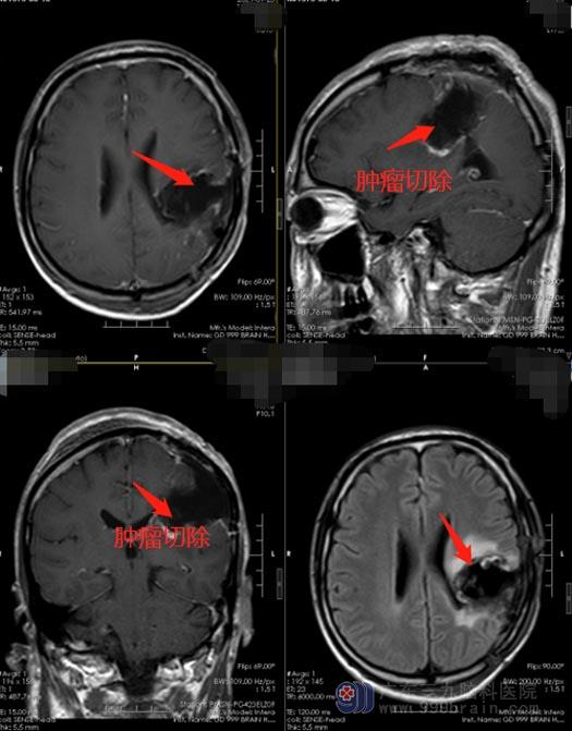 2020年开始,刘先生出现反复的右侧肢体麻木,家里人有点担心了,他们决定到广东三九脑科医院仔细看看。进一步头颅MR检查结果提示:“左侧顶部呈术后改变,左侧顶叶局部软化灶形成并胶质增生,增强后其内斑点状轻度强化,邻近左侧顶叶缘上回区域结节状异常强化,不除外肿瘤性病变”。刘先生的心顿时凉了半截,肿瘤复发了。
