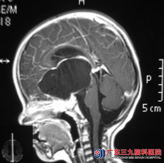 妈妈带着乐乐找到广东三九脑科医院综合神经外科 鲁明主任。头颅MR检查:鞍上区示一较大的不规则形占位性病变,呈不规则环形强化,范围约6.57cm×5.63cm×4.50cm,病变向上压迫视交叉,三脑室明显受压,脑干受压,双侧侧脑室扩大。