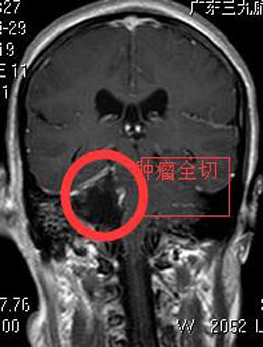 张女士一年前出现右耳听力下降,无头痛头晕等不适,未行头颅相关检查及治疗。一个月前出现阵发性头痛,伴右侧面部麻木,在外院予针灸治疗后面部麻木可缓解。头颅CT检查提示:右侧桥小脑角占位。