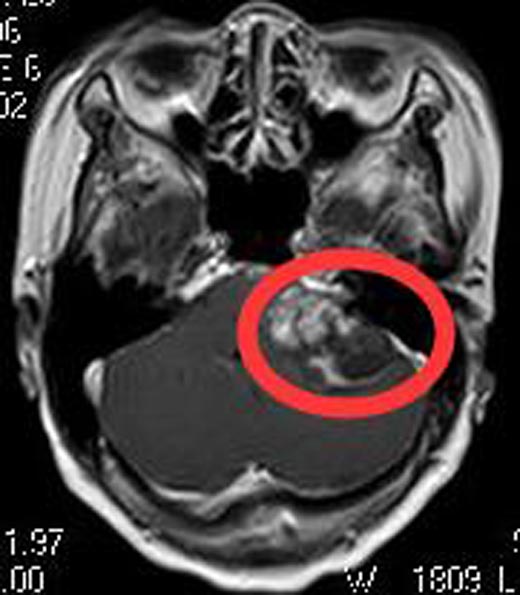 63岁的黄阿姨一个月前出现头痛,位于左侧颞部,呈跳痛,伴恶心呕吐,每次持续数小时,每天均有发作。多次去当地医院治疗,症状未见改善,同时出现了左侧听力下降。