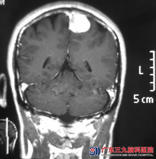 一周前去医院体检,头颅CT提示左侧顶部大脑镰窦旁占位,考虑脑膜瘤可能性大;广东三九脑科医院头颅MR提示:左侧顶部镰窦旁占位,大小约3.0cm×3.0cm×2.5cm。