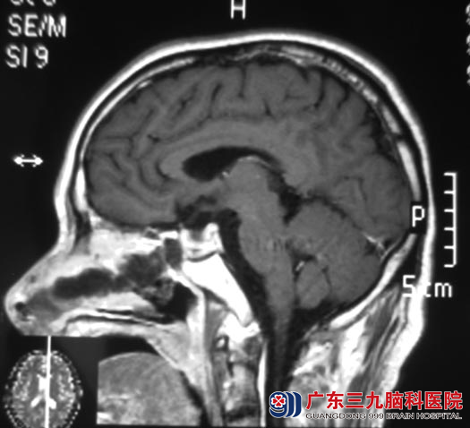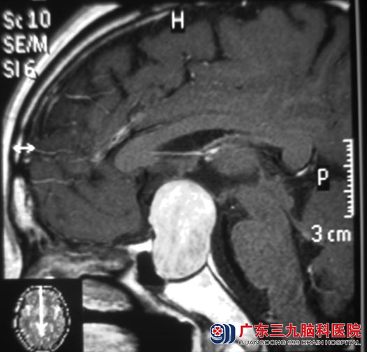 广东三九脑科医院垂体瘤诊疗中心 鲁明主任给陈先生查体发现:左侧视力为眼前指数约10cm,颞侧视野偏盲,右眼视4.8;头颅MR检查见蝶鞍内与鞍上示一较大的略呈“葫芦”样肿块影,大小约34.0mm×25.9mm×29.1mm,内分泌检查提示FT445.09pmol/L,T0.268 ug/L,T4,266nmol/L,T35.077nmol/L,经内分泌专家会诊暂不考虑甲亢。