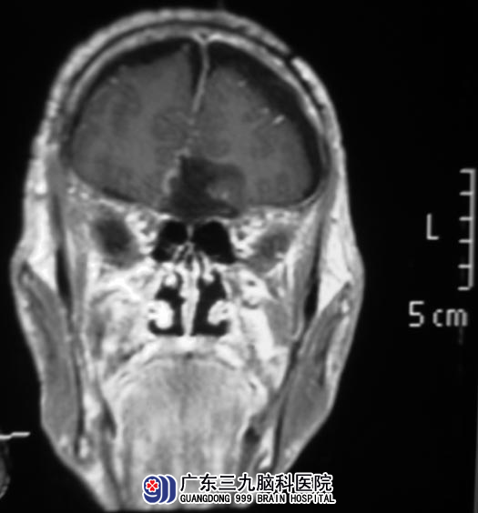 叶老伯,虽然是73岁的老人,但身体一直不错。10天前有头晕,症状较轻,家人都没有引起关注。直到突然出现肢体抽搐,伴神志不清,才慌慌忙忙将老人送当地医院就诊。头颅CT检查提示额部占位,广东三九脑科医院MR检查提示前颅底示一大小约57mm×49.2mm×41.3mm病灶。http://www.999brain.com/