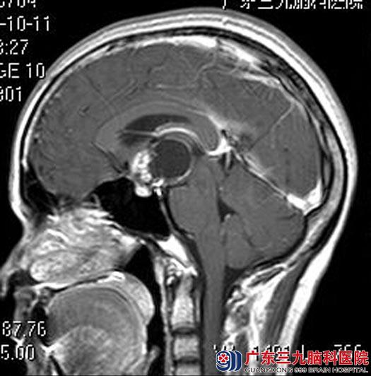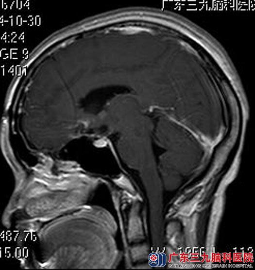 他们来到广东三九脑科医院,头颅MR检查提示鞍上池内占位病灶,大小约34.9mm×30.6mm×27mm,考虑颅咽管瘤可能性大。