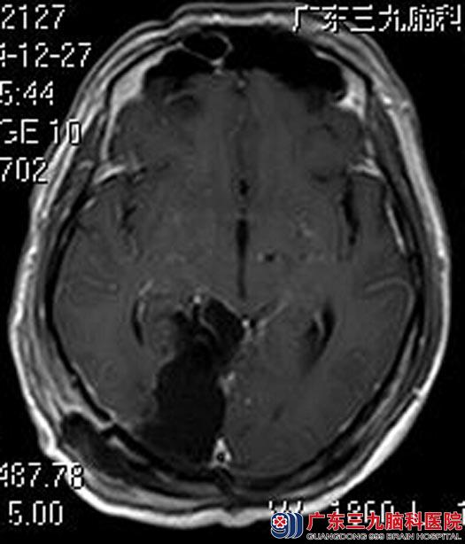 早在今年初,林先生因为头痛去医院检查,发现颅内长有肿瘤,他惧怕手术,担心后遗症,正好听说中药治疗肿瘤效果好、花费少、不开刀、不痛苦。服用中药10个多月后,复查头颅MR提示肿瘤较前增大,林先生感觉头痛症状也较前加重,严重时伴有恶心等症状,为了不再延误治疗,家人劝他来到广东三九脑科医院综合神经外科。