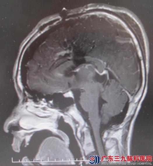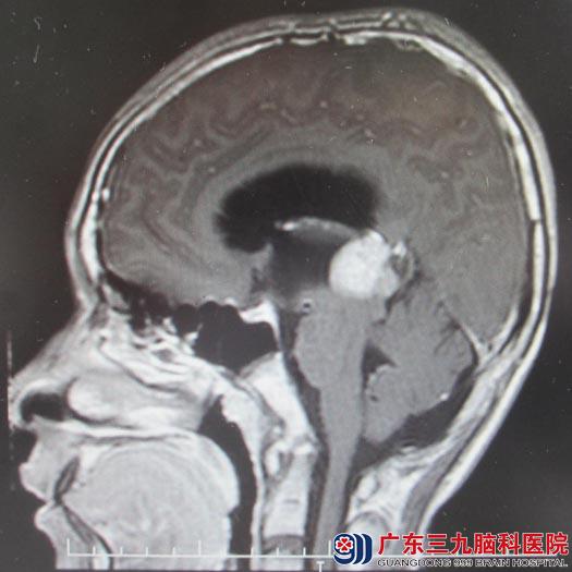 小杨一个多月前出现头痛,以额部明显,阵发性钝痛,未予重视;3天前,头痛较前明显加重,并出现呕吐,视力下降,视物重影,当地医院行头颅CT检查示“松果体区占位,直径约2.5cm,伴梗阻性脑积水”。入住广东三九脑科医院综合神经外科,头颅MR证实了当地医院的检查结果。