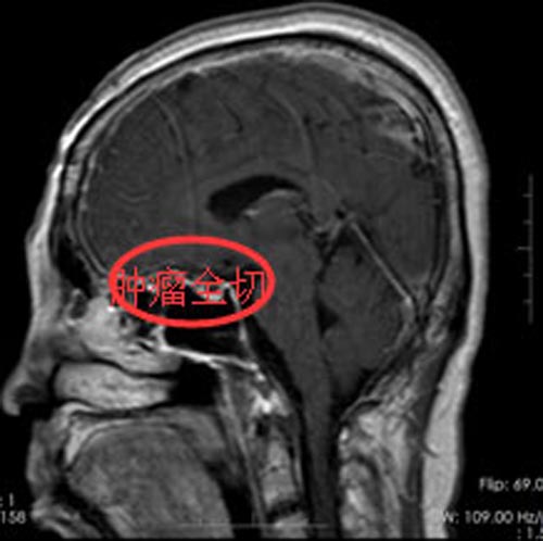 近2个月病情有加重趋势,并伴有头痛症状,当地医院行CT检查,结果示:鞍区占位。广东三九脑科医院头颅MR提示:1.鞍区巨大型占位性病变,肿瘤大小约2.1cm×1.9cm×1.1cm。2.梗阻性脑积水。陈姐及家人都同意手术治疗,由综合神经外科科鲁明副院长主刀行“鞍区巨大型占位性病变切除术”,手术顺利,术后病理示:鞍区脑膜瘤。术后经过一段时间的抗感染、脱水、营养神经、对症支持治疗后,陈姐恢复很好,视力较术前好转,重影症状消失。