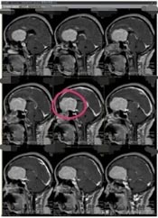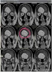 近段时间来,林阿姨头痛越来越重,偶尔还会出现小便失禁,林阿姨这才有所警觉。在医院头颅CT检查,显示:前颅底巨大占位,考虑脑膜瘤可能性大。林阿姨吓坏了,半辈子都平平安安,想不到脑子里居然有这么大的一个肿瘤。