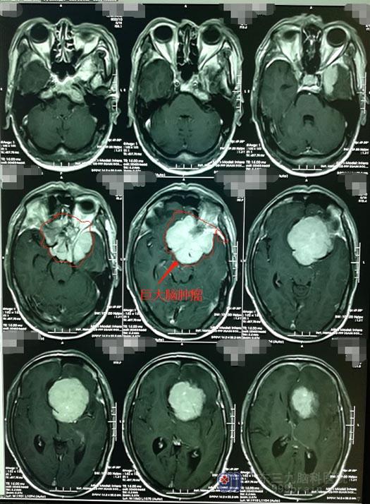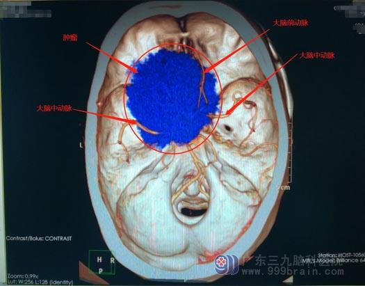 肿瘤巨大,不但压迫了周围重要的脑组织结构,还包绕了多条颅内动脉及其分支,肿瘤血运特别丰富加上颅内压增高等不利因素,手术全切相当因难,如果不能全切肿瘤,那瘤区的出血将不可想象。手术风险巨大,手术全切肿瘤并保留最佳神经功能是神经外科医生面临的极大挑战。