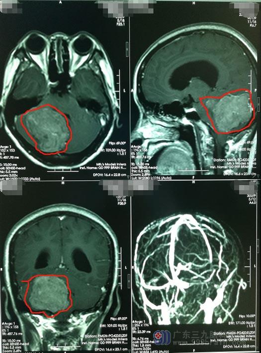 患者病史长,且肿瘤巨大已经跨小脑幕上下生长,头颅血管造影检查提示肿瘤血供丰富,肿瘤还侵犯了颅内重要的静脉窦,所以更增加了手术的难度,术中出血会比较多,术后也可能出现严重的并发症。肿瘤大部位于后颅窝,瘤体已巨大,若不及时进行手术,会出现慢性枕骨大孔疝的急性发作,导致生命危险。