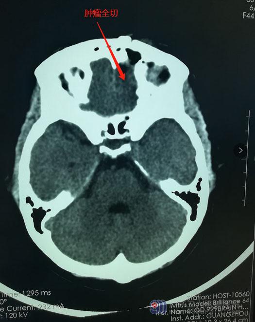 最终,陈阿姨决定听从医生的建议,接受手术治疗。由鲁明主任主刀在全麻下为陈阿姨实施经左侧眉弓锁孔入路行前颅窝底左侧额部镰旁脑膜瘤切除术,手术过程顺利,病变被完全切除。