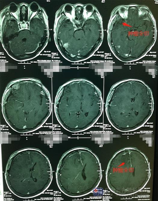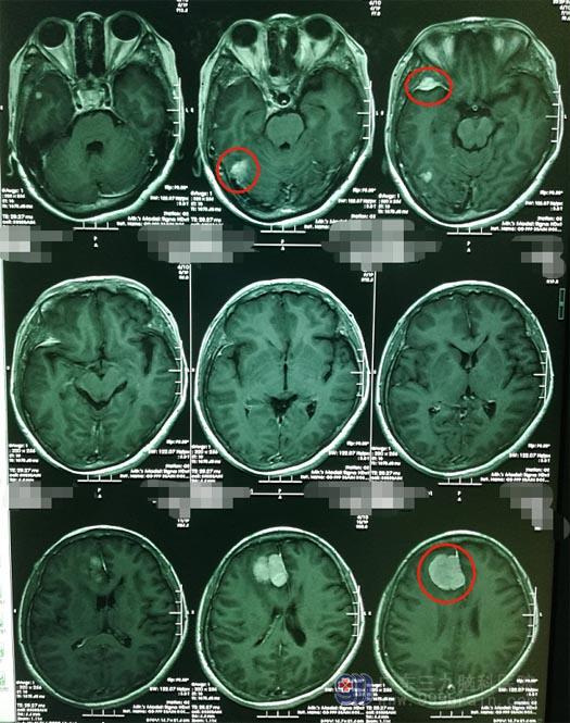 十多天前,高阿姨除了头痛,还出现了恶心呕吐,赶紧在当地医院做了头颅MRI检查,提示:右侧额部大脑镰旁、右侧颞下回旁、右侧小脑幕区多发脑膜瘤。听从了一位老乡的介绍,高阿姨来到广东三九脑科医院神经外五科,诊断“颅内多发占位”。