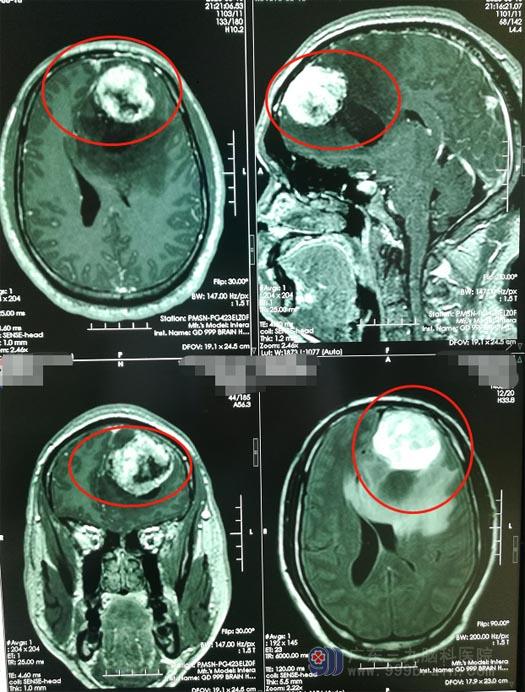 近10天来,陈先生每隔1-2天就会发作一次,并伴有呃逆及恶心感,随着晕厥的发作频率增加,家人意识到了问题的严重性。当地医院头部CT检查提示双额叶及胼胝体区病变存在,考虑是脑部肿瘤。广东三九脑科医院的头颅MR显示:左额叶占位,考虑肿瘤性病变。