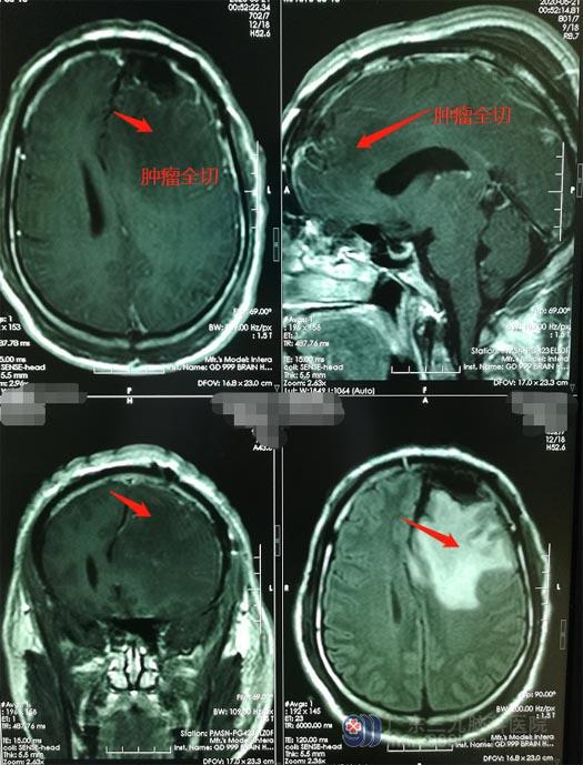 医院副院长、神经外五科主任鲁明查房后指示:陈先生颅内占位考虑肿瘤性病变,病变体积大,并且临近功能区,水肿严重,需尽快手术切除。额叶是脑功能区,稍有不慎,可导致肢体偏瘫,言语功能障碍等。经过慎重的术前讨论后,决定采用术中唤醒麻醉,利用神经电生理技术精确定位脑重要功能区并探询病变与功能区的关系,最大限度切除肿瘤并保留功能区。术中,见肿瘤的血供丰富,术中冰冻病理提示脑膜瘤,显微镜下将肿瘤全切。
