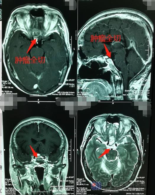 术后,钟阿姨神志清醒,视力视野正常, MRI显示鞍结节病灶已切除,无残留。
