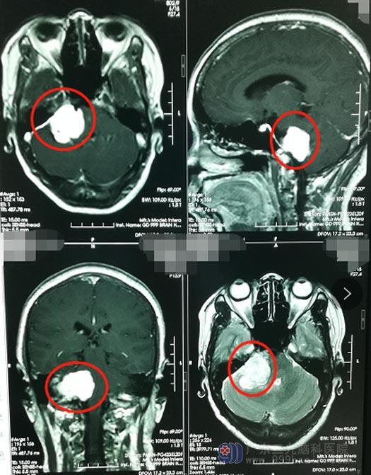 年过半百的李阿姨,5年前就开始右耳不好使,她自己和家人都理所当然地认为:人老了,耳背很常见。直到一个月前,李阿姨开始头痛,痛得浑身出冷汗,才和家人来到广东三级脑科医院检查;脑部影像检查发现颅内有一3cm×4cm×4cm大小的肿瘤,诊断为:右侧桥小脑角占位,考虑脑膜瘤, 入住神经外五科。