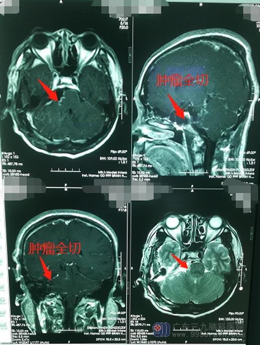 在家人的多方打听和不断鼓励下,邓大哥来到了广东三九脑科医院神经外五科。接诊的医院副院长、神经外五科主任鲁明仔细地查看了患者的影像资料,初步考虑是“右侧岩斜区跨中后颅窝占位,良性的脑膜瘤可能性比较大”。