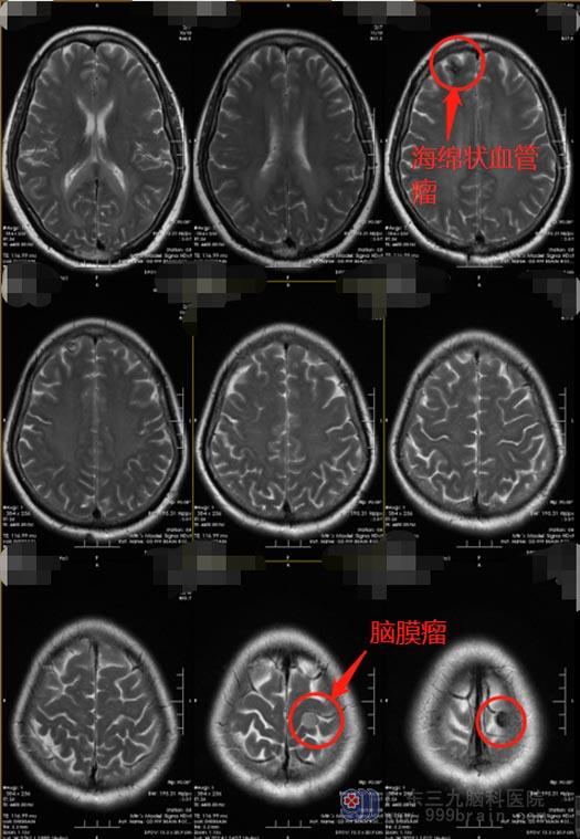 55岁的林阿姨在半个多月前突然感觉到脖颈和颜面部大汗淋漓,以为是更年期的常见症状。家人陪她去医院检查内分泌,头颅MR检查意外发现“1.左侧额顶部中央区颅骨内下小脑膜瘤;2.右侧额叶皮层异常信号,考虑海绵状血管瘤”。