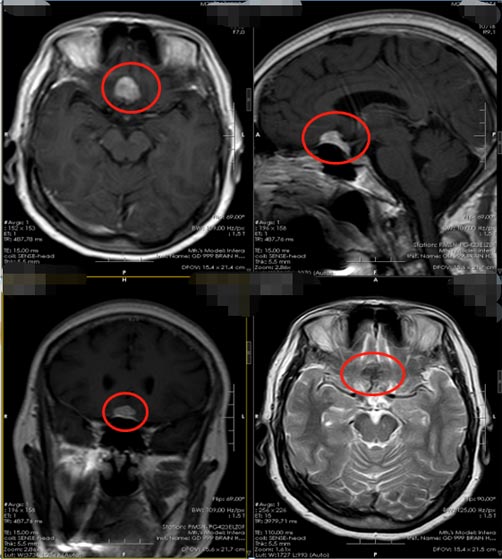 但一个多月来,头痛老是反反复复,家人觉得蹊跷:感冒也不至于这么长时间啊?当地医院就诊,头颅核磁共振检查还真发现了问题:“前颅窝底占位性病变,考虑脑膜瘤可能”。