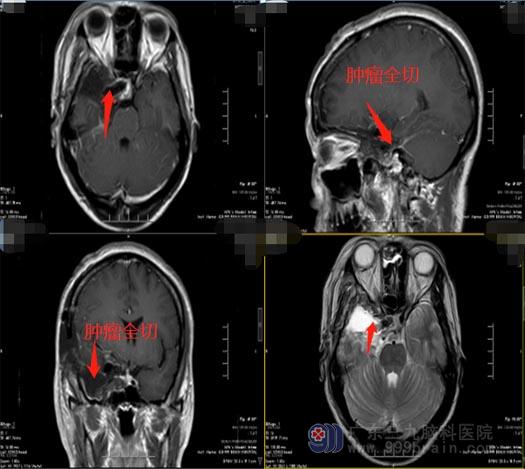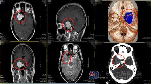 随后的时间里,柯女士出现肢体抽搐十几次,伴随着右眼视力逐渐下降,在当地医院检查,头颅MR提示:右侧鞍旁稍高密度占位性病变内血管丰富,考虑脑膜瘤,病变包绕右侧颈内动脉虹吸段,右侧大脑中动脉受推挤向内上方偏移。入住广东三九脑科医院神经外五科后,进一步检查发现患者的右侧眼球无法充分向上、向外活动,肿瘤已经侵袭大血管及海绵窦,病变血供丰富且包绕颈内动脉。