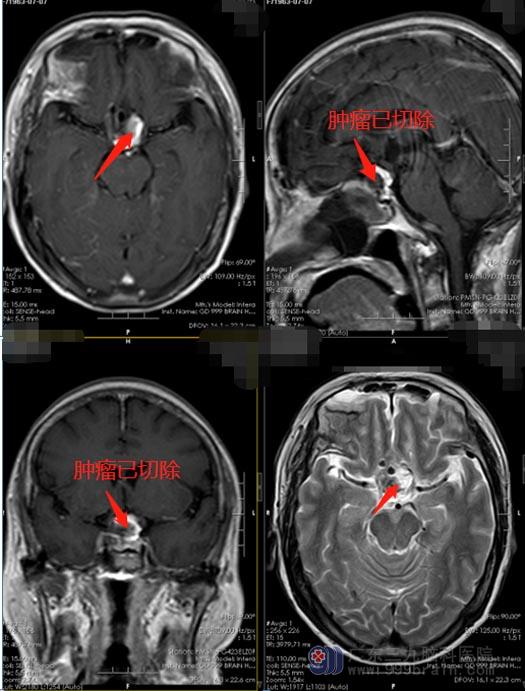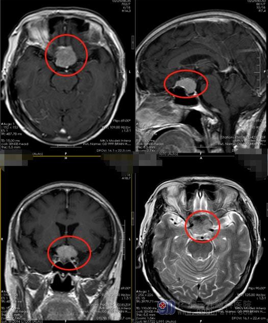 吴阿姨觉得问题有些严重了。当地医院头颅CT检查提示“鞍区一鞍上占位性病变,考虑脑膜瘤”,吴阿姨女儿在网上搜索肿瘤的相关介绍后就更加的恐惧,脑海里一直滚动着这些词:开颅、脑出血、脑积水、脑脊液漏、偏瘫、失明……。一家人忐忑不安地来到广东三九脑科医院,进一步影像检查确诊为“鞍结节脑膜瘤”。