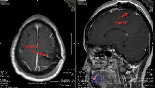 为寻求更好的手术治疗效果,查先生来到了广东三九脑科医院神经外五科。充分地评估病情后,外五科手术团队在唤醒麻醉下行“左侧顶部多发脑膜瘤切除术”。术前导航定位肿瘤,打开硬膜后见肿瘤于中央后沟,小心细致地将多发肿瘤一次性全部切除。手术顺利,术后肢体运动良好。