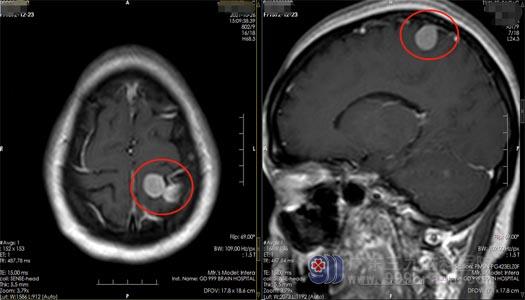 查先生,48岁,1个月前无明显诱因出现失神发作,表现为大脑一片空白,持续时间约1-2秒。近1个月来,他又发作两次,在当地医院查头颅MR,提示“左侧顶部多发占位病灶”,大小分别为17mm×10mm、15mm×13mm,考虑为脑膜瘤。