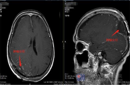 家人找到了广东三九脑科医院鲁明副院长。完善相关检查后,鲁明及神经外五科主任王国良带领治疗团队进行仔细的病历讨论,入院第三天即在全麻下行右侧枕部脑膜瘤切除术,术中镜下全切肿瘤,血管保护完好,手术顺利结束。